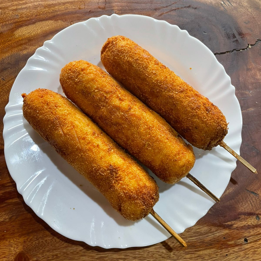 Delicioso kibe frito recheado com carne moída temperada, perfeito para o lanche.