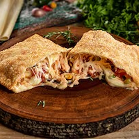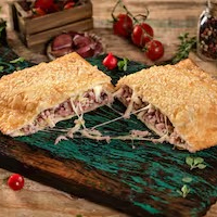 (Carne, cebola, calabresa, pimentão, azeitona e milho)