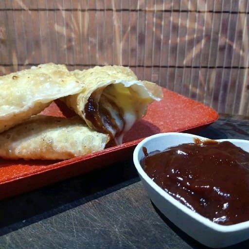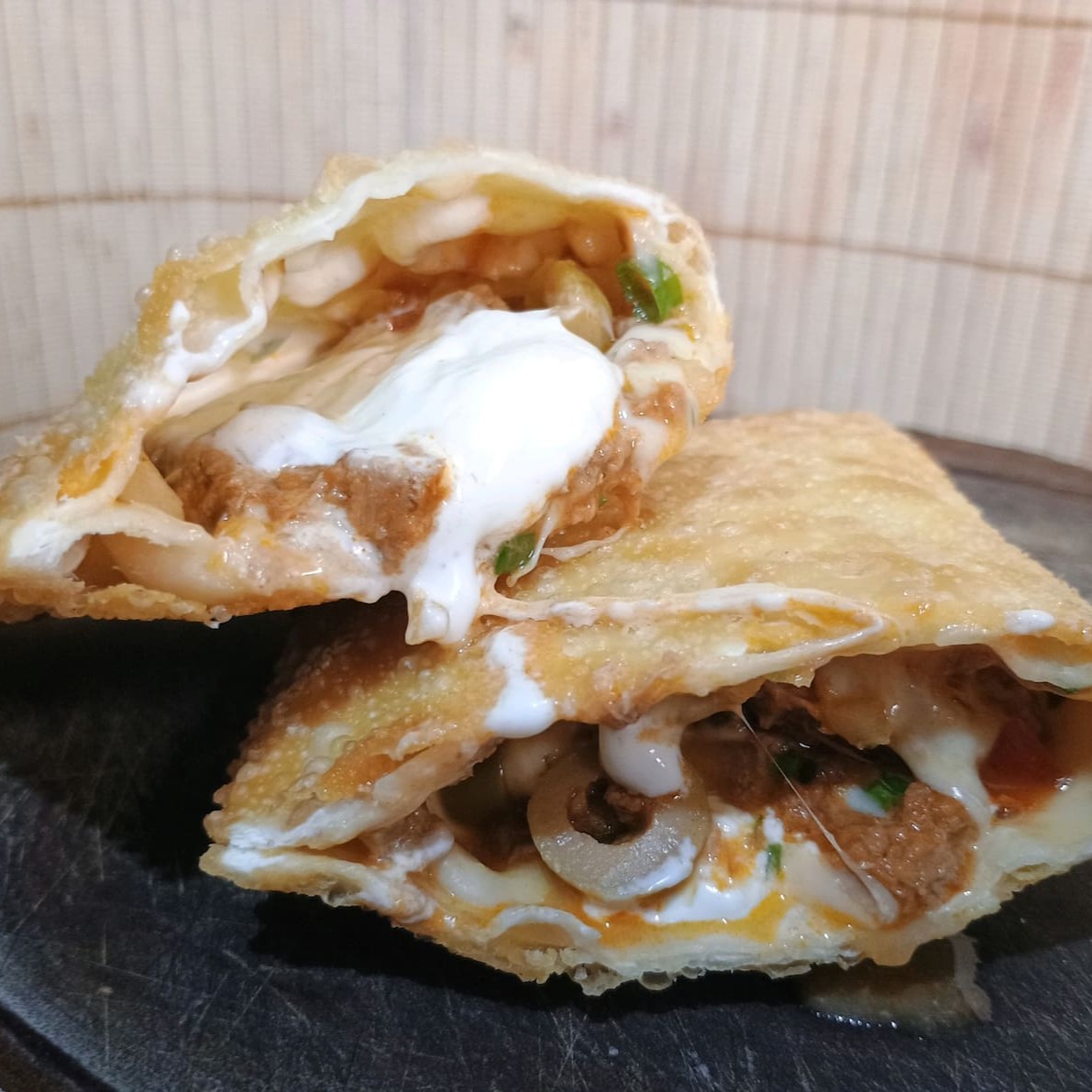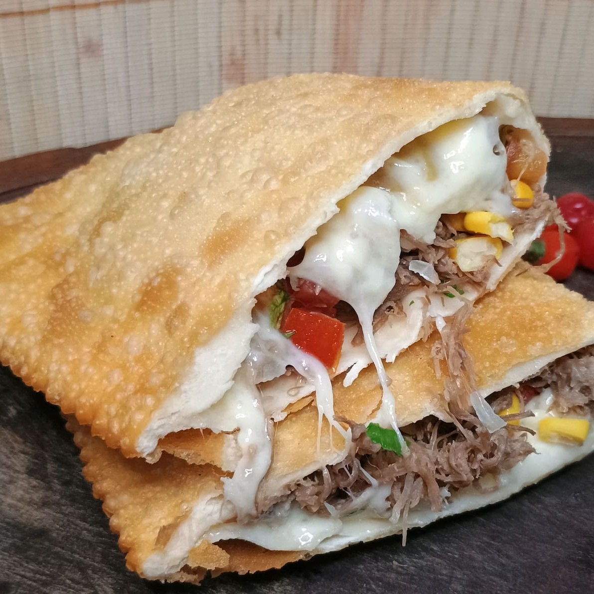 Carne moída, cebola, cheiro verde, tomate, milho, mussarela e Cream Cheese. Pastel com 20cm.