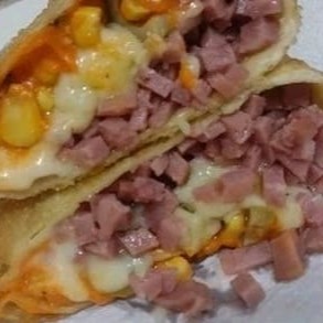 Calabresa, mussarela, cream cheese, cebola, milho e tomate