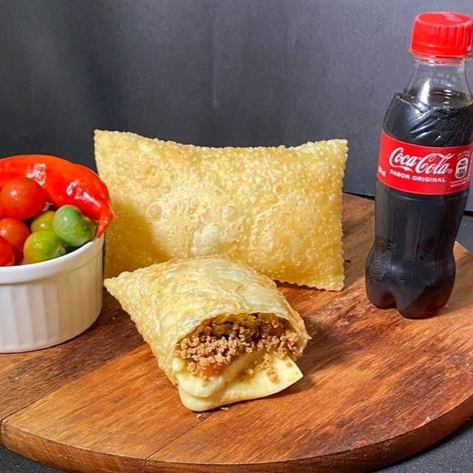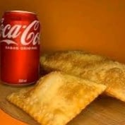 Um pastel maravilha com dois sabores e um refrigerante estupidamente gelado !