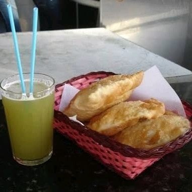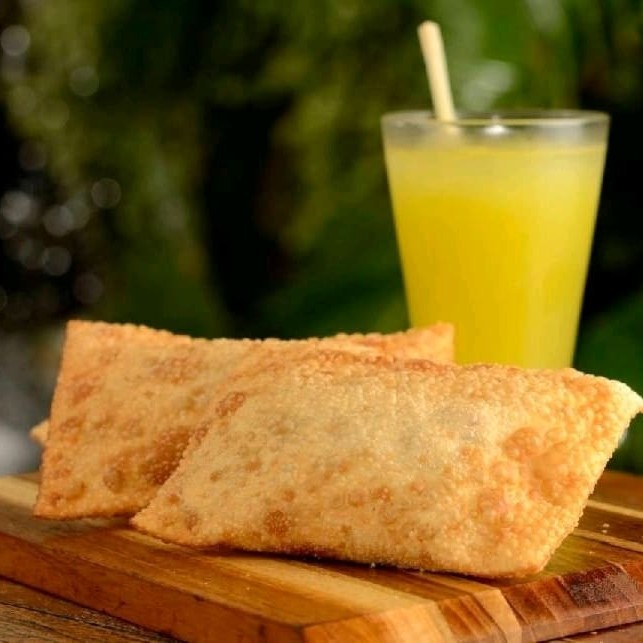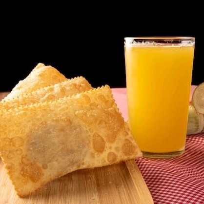 3 pasteis sequinho e crocante quentinho e um delicioso suco natural geladinho