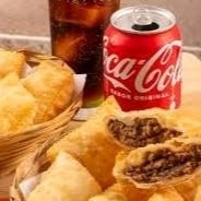 São deliciosos mini pastéis mais um refrigerante bem gelado