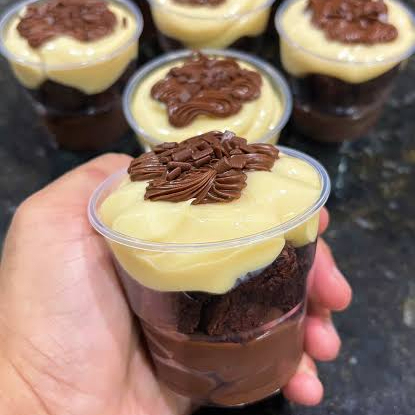 Delicioso mousse de ninho,brigadeiro cremoso de ninho , brigadeiro 50% cacau e pedacos de brownie
