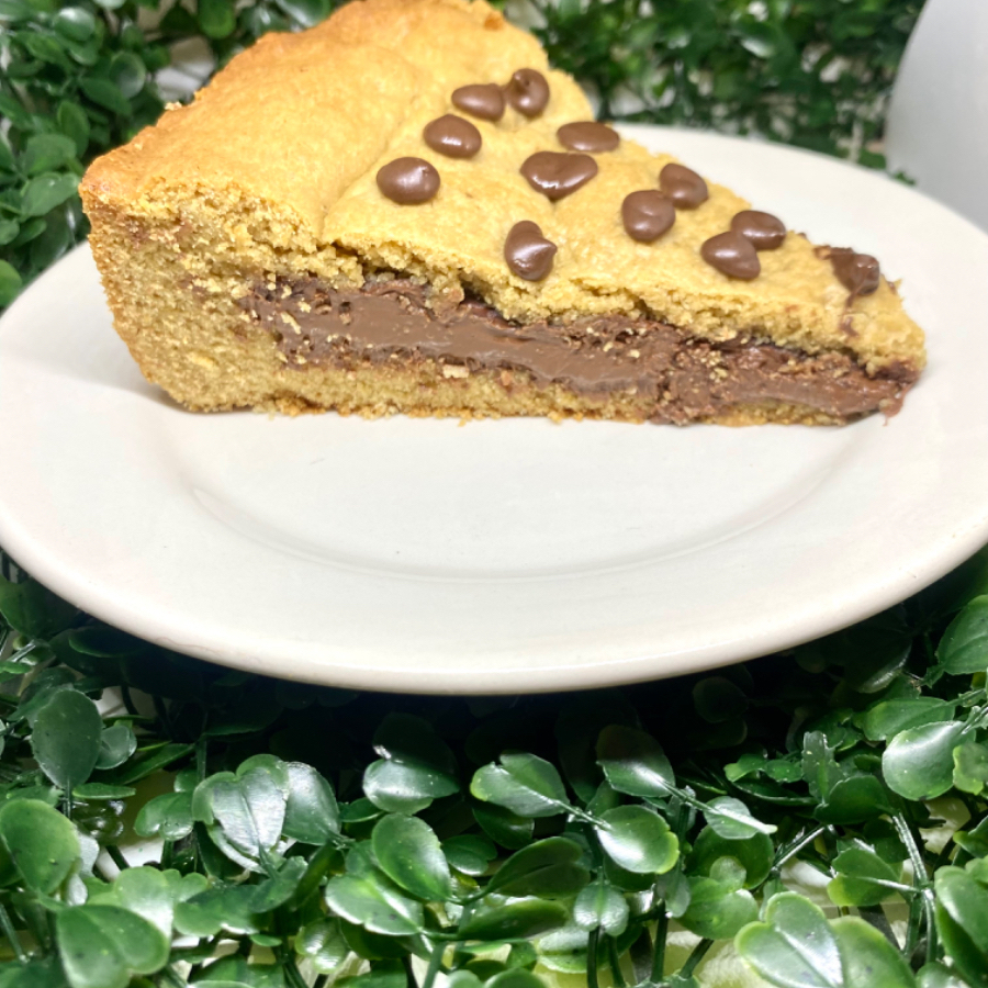 Fatia generosa de cookie com recheio nutella