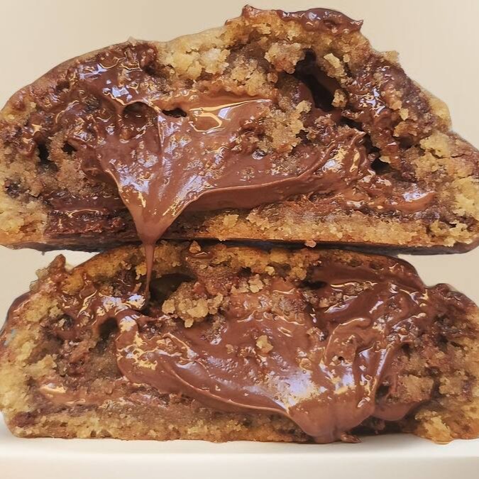 Delicioso cookie amanteigado de Nutella. São 90 gramas, com massa amanteigada com um blend de chocolate blend e meio amargo, e recheado com muita Nutella! A combinação perfeita!
