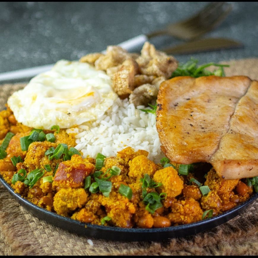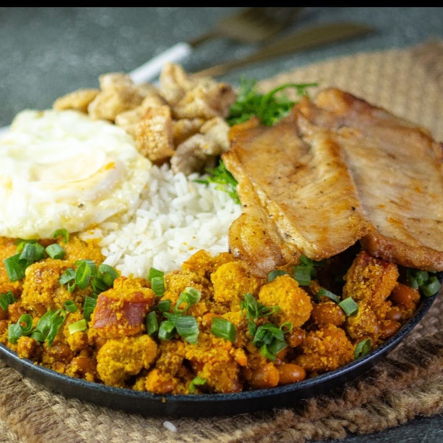 Acompanhamento-tropeiro,Arroz,torresmo,couve,ovo,frito,1 Bife de porco
