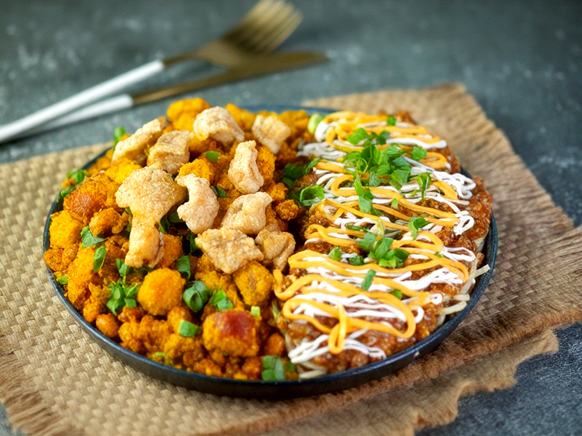 Acompanhamento-tropeiro,Arroz,torresmo,couve,ovo,frito Fritas