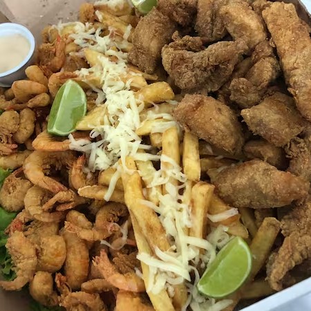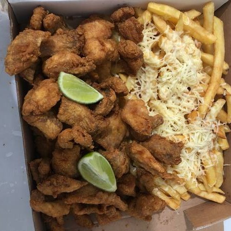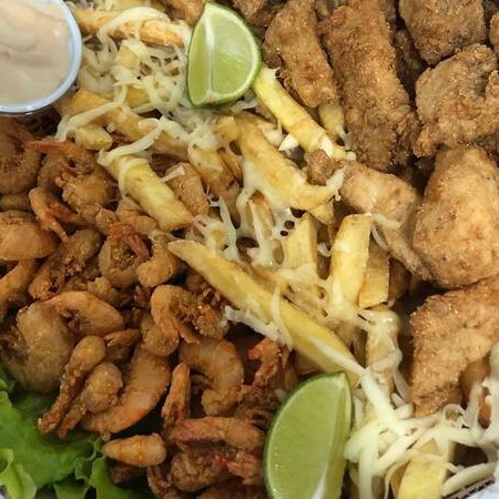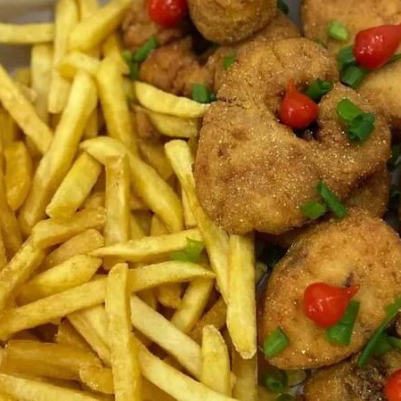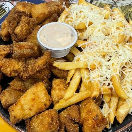 250g Tilapia Empanado, 250g Batata Frita Com Queijo, 150g Camarão Empanado.