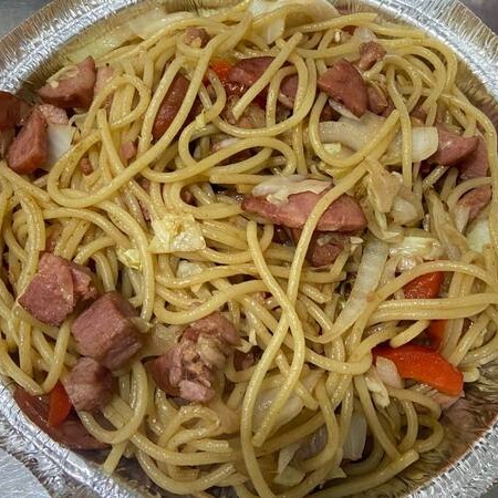 Massa, Frango Desfiado, Bacon, Calabresa, Repolho, Azeitona, Milho, Cebola, Pimentão, Shoyo, Molho De Alho