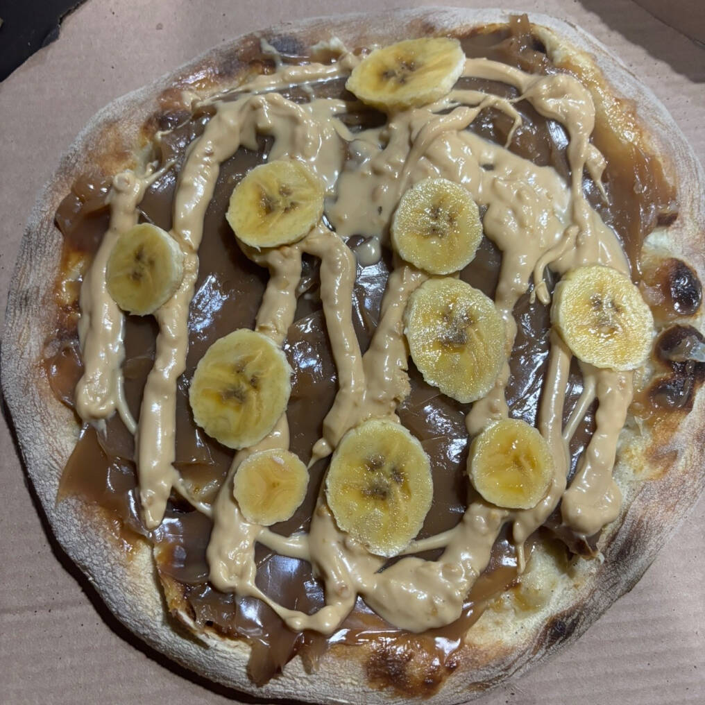 Doce de leite, creme de amendoim e banana.