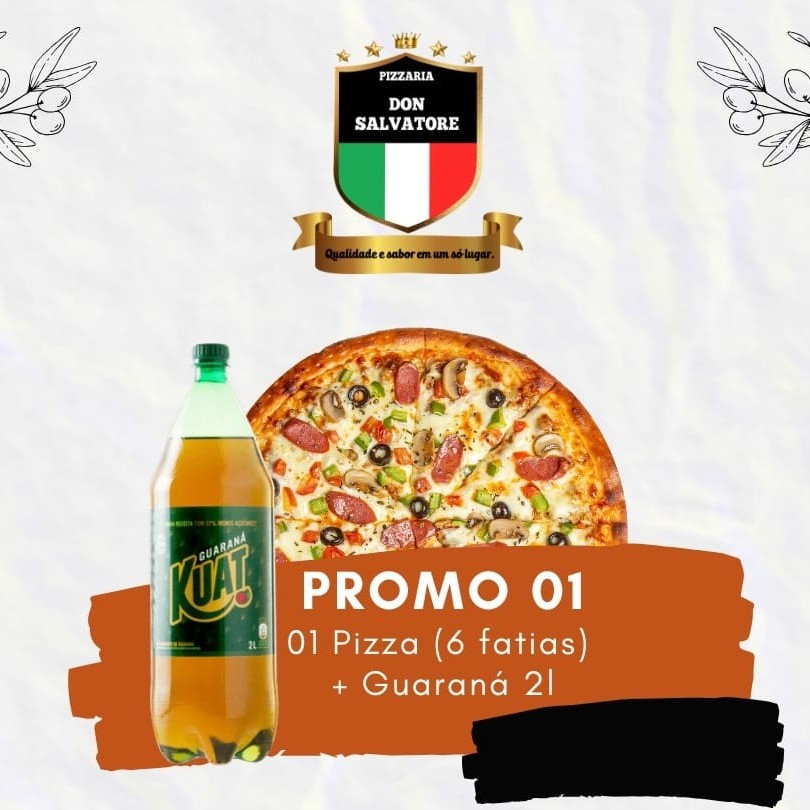 01 Pizza Grande (6 fatias) + 01 Guaraná Kuat 2l