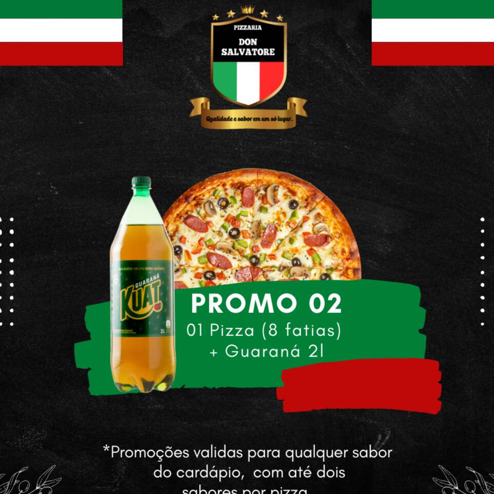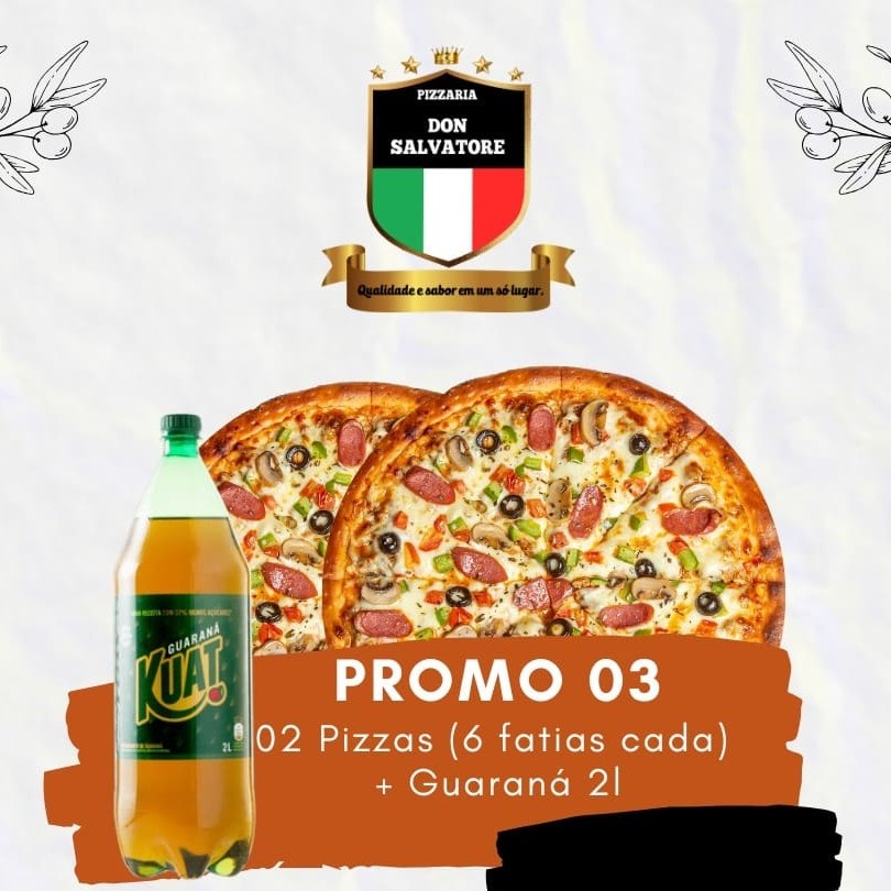 02 Pizzas Grandes (6 fatias) + 01 Guaraná Kuat 2l