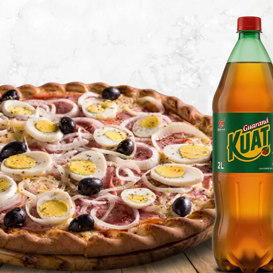 Pizza Gigante 35cm - 8 Fatias - Siciliana + Kuat 2lt Tradicional