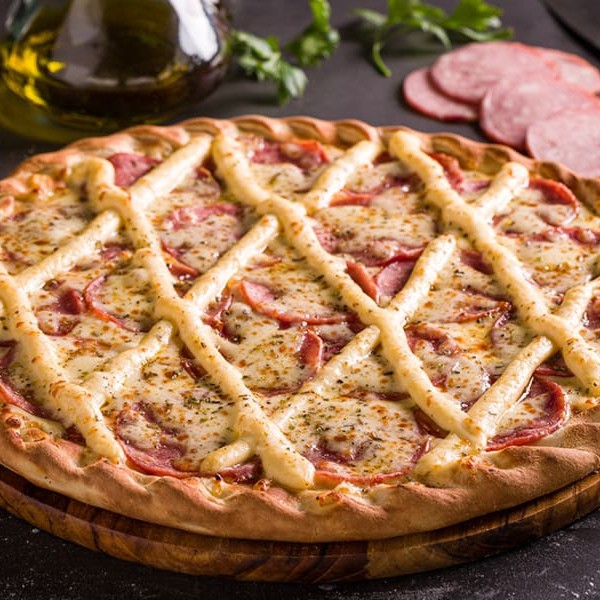 Mussarela cremosa, parmesão de sabor intenso, Catupiry suave e provolone marcante. Uma pizza rica em queijos que vai encantar seu paladar com cada pedaço!