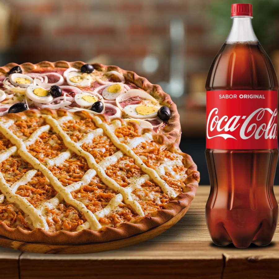 Pizza Gigante 1 2 Calabresa 1 2 Presunto + Coca Cola 2 Litros