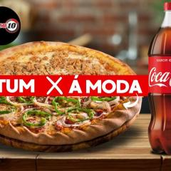 Pizza grande com 6 fatias, metade à Moda e metade Atum , recheada com mussarela cremosa, atum suculento e um toque de orégano. Acompanhada de Kuat 2l. Uma explosão de sabores para compartilhar!