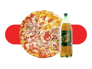 1 Pizza queridinha 8 fatias + pizza doce 4 fatias + Kuat 2l