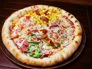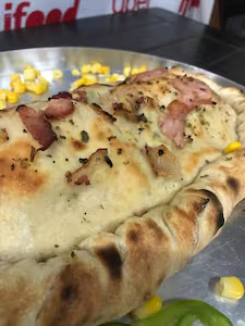 Pizza 4 sabores definidos gigante 8 fatias ( amoda, presunto, calabresa e milho com bacon ) ( pizza promocional, menos elaborada que as dos valores normais)