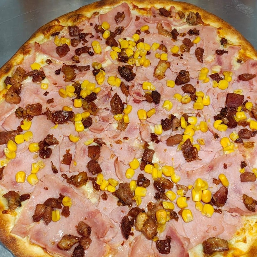 Pizza Presunto Bacon E Milho Gigante 35 Cm 8 Fatias