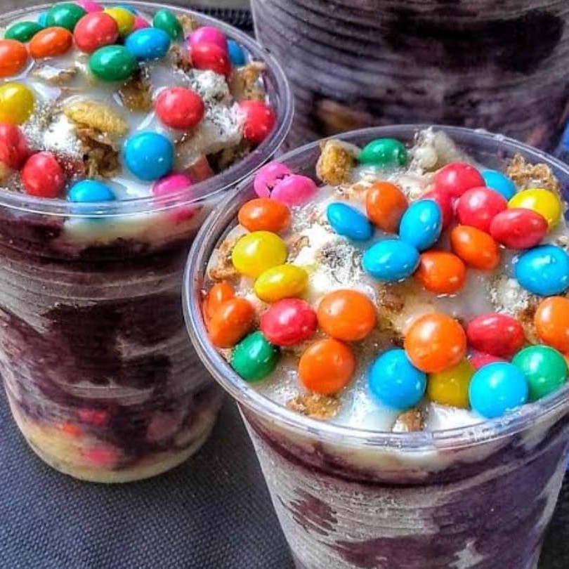 Açai Camadas Com Leite Em Pó, Leite Condensado E M & M por cima