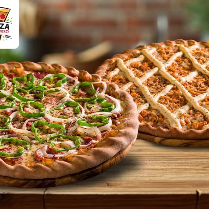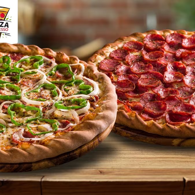 Desfrute de uma Pizza Gigante 10 opções de sabores salgados à sua escolha, acompanhada por um refrigerante refrescante. Uma festa de sabores para compartilhar!