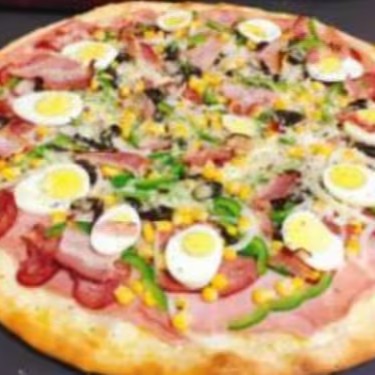 Amoda--Molho ao sugo, Mussarela, Presunto, Calabresa,Milho,Pimentão,Cebola,Tomate,Oregano