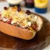 Pao, 2 salsicha, queijo, presunto, bacon, Catupiry, milho, batata palha, molho branco e molho a bolonhesa