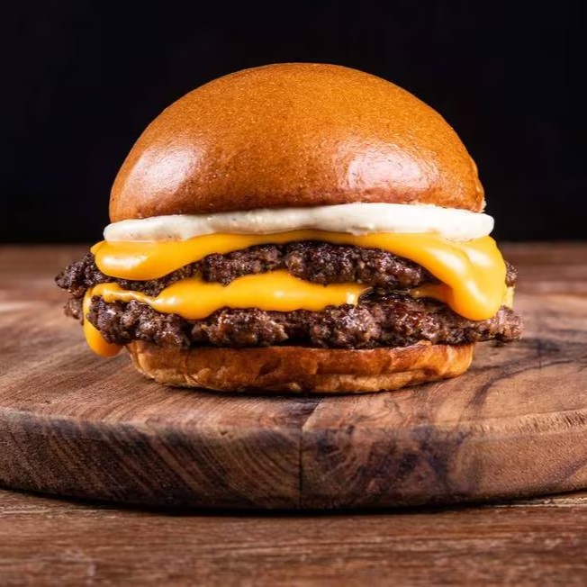 Pão de Brioche, Burger artesanal bovino 160 gramas, queijo, salada e molho especial