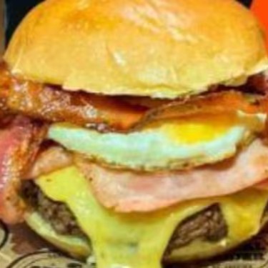 Pão de brioche, ham de picanha 120gr, ovo , queijo , presunto , bacon , Cheddar , alface ,tomate , milho, batata palha e molho especial
