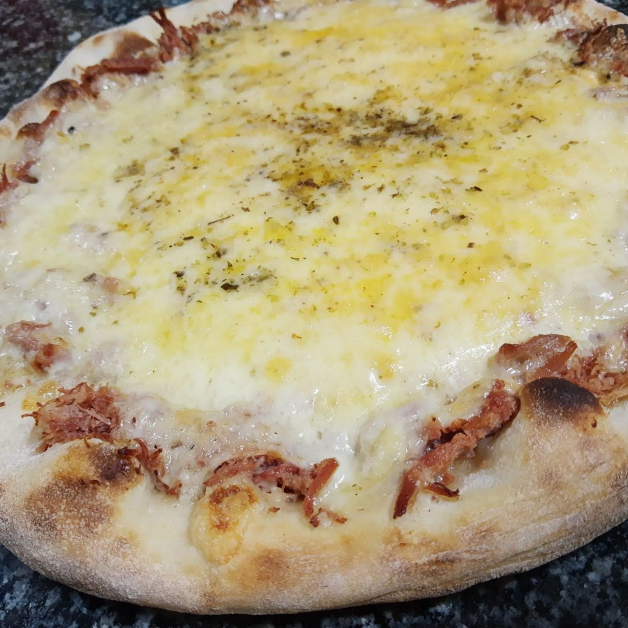 Mussarela, cebola, carne seca, pimenta biquinho e catupiry
