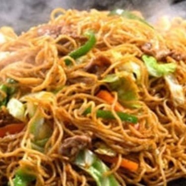 Macarrão, calabresa, cebola, pimentão, molho de ervas, molho shoyo, mussarela e bacon.