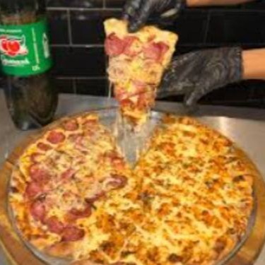 1 Pizza Gigante Meia Amoda 2 Frango Requeijao E 1 Media 4 Fatia Brigadeiro + Mate Couro 1l De Brinde