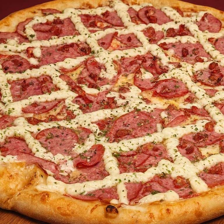 Molho Mussarela Presunto Calabressa Cebola Pimentao Azeitona Bacon Milho 1/2 Molho Frango Requeijao