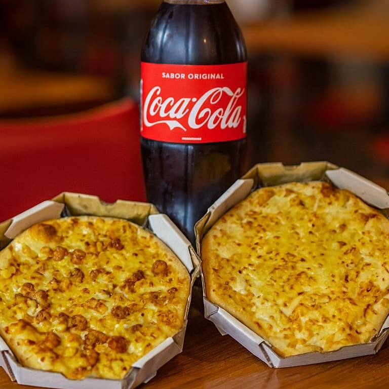 1 Molho da casa Mussarela Frango Requeijão 2 Molho da casa Mussarela presunto calabresa tomate cebola milho pimentão azeitona Bacon