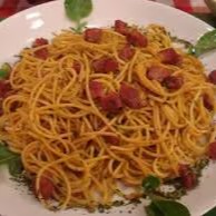 Espaguete - macarrão, calabresa, bacon, alho, mussarela, molho shoyo