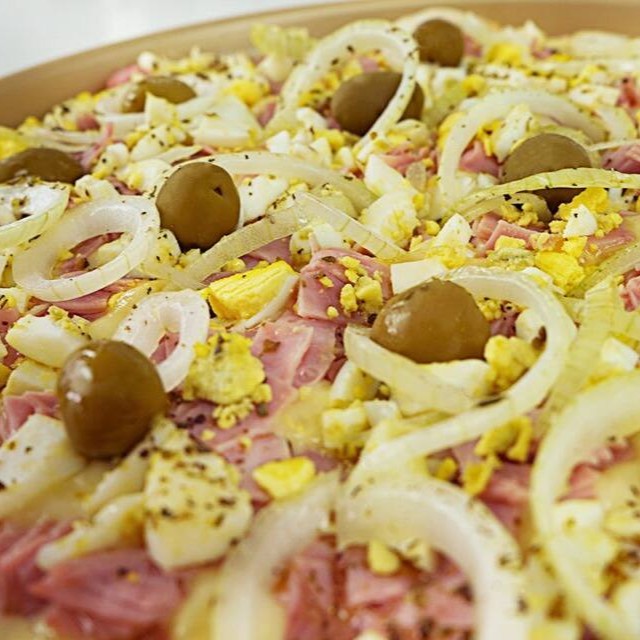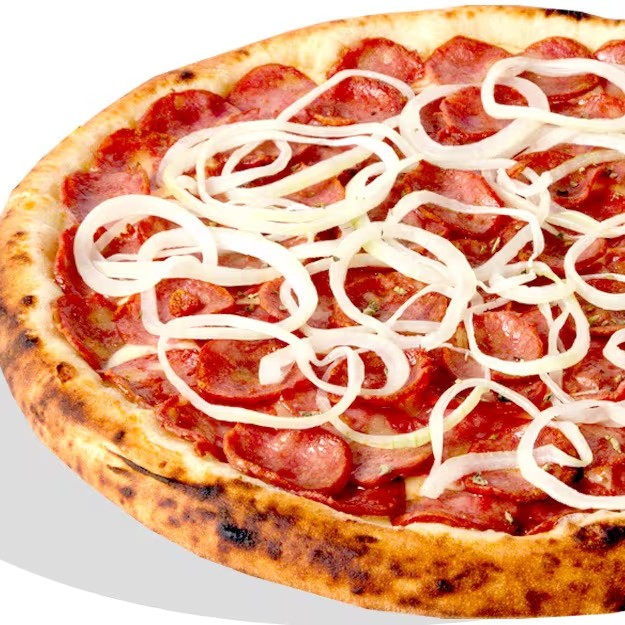 Mussarela,calabresa,cebola,molho ao sugo e oregano