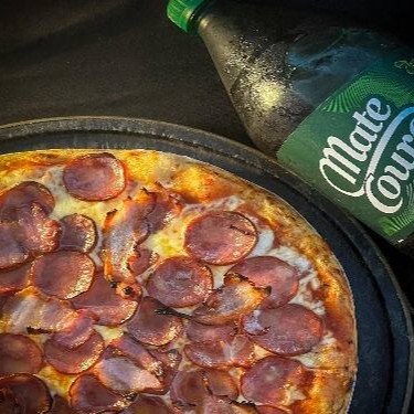 1 Pizza Gg 8 fatias metade presunto, metade calabresa + 1 Mate Couro 1l