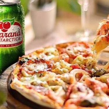 Aproveite nossa promoção especial! O Combo de Pizza + Guaraná apresenta uma deliciosa pizza média, cuidadosamente preparada com ingredientes frescos e de alta qualidade, dividida em quatro generosas fatias para satisfazer sua fome. Acompanhada por uma lata de 350ml do autêntico Guaraná Antarctica, refrescante e borbulhante, proporcionando uma experiência gastronômica completa e prazerosa. Não perca essa oportunidade!