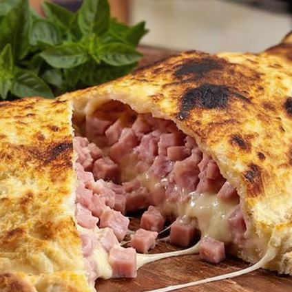 Massa leve e macia, recheada com uma combinação irresistível de mussarela derretida e presunto ralado, tudo finalizado com um toque aromático de orégano. Assado até ficar dourado e crocante, esse calzone oferece uma explosão de sabor em cada mordida, perfeito para uma refeição deliciosa e reconfortante!