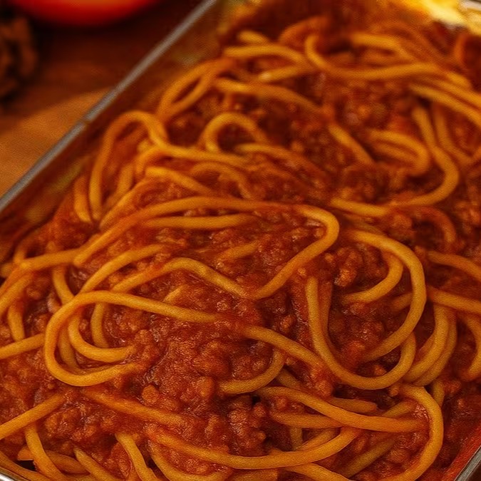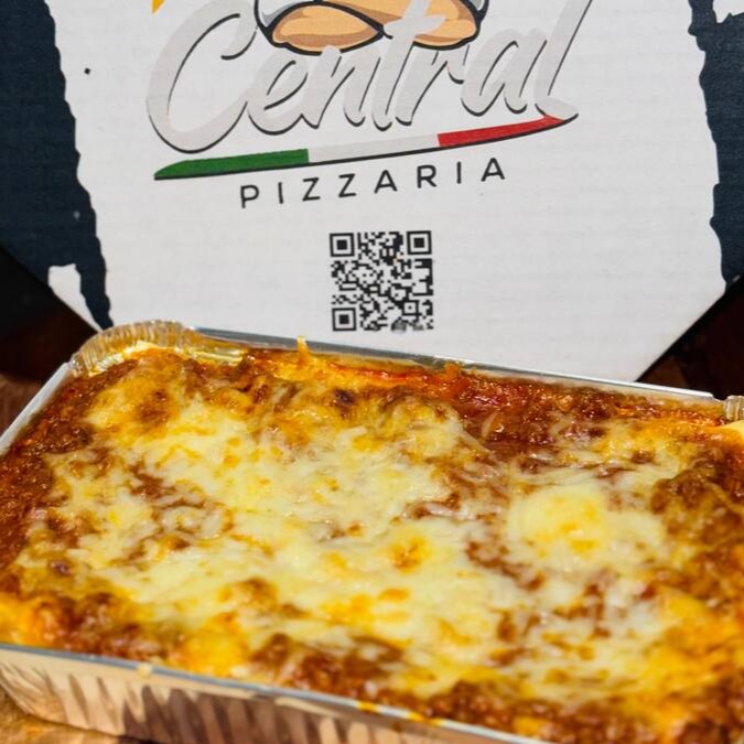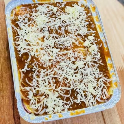 Massa macia intercalada de mussarela, presunto e molho à bolonhesa feito na casa.