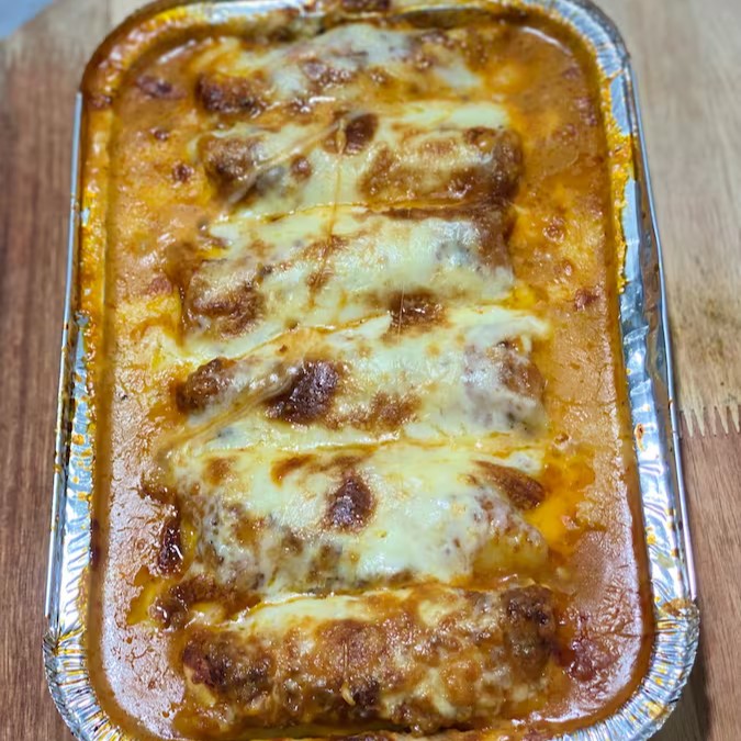 São 6 deliciosas massas redondas recheadas de frango, mussarela, presunto e coberta por molho à bolonhesa artesanal da casa.