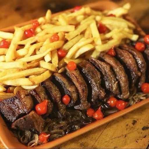 500g de contra filé acompanhado de cebola e pimenta biquinho
