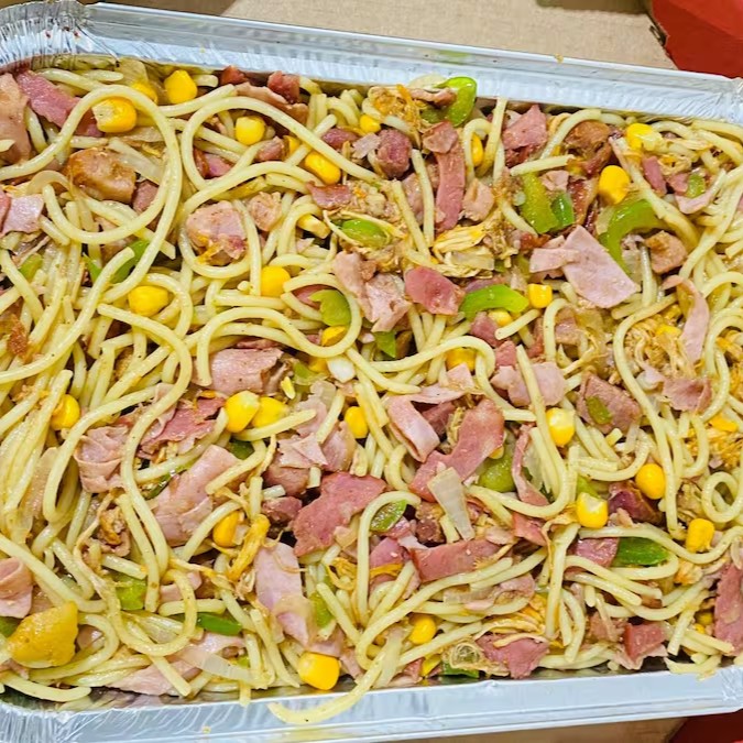 macarrao,frango, bacon,presunto,calabresa,milho,tomate ,pimentao,cebola,molhos