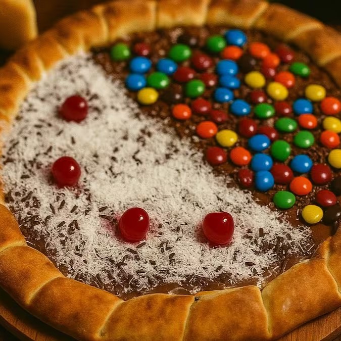 mussarela,palmito,tomate,cebola,azeitona preta,pimentao e oregano,milho