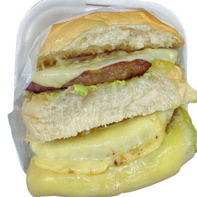 Pão, 2 Hambúrguer de Picanha 120 gr, Preparo especial com bastante Queijo e Molho especial