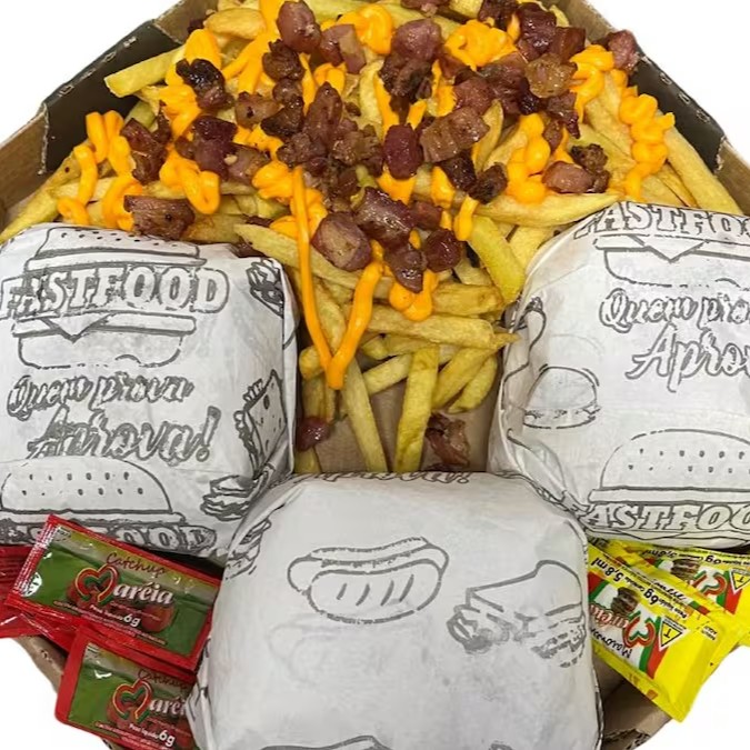 Pão, 2 queijos, 2 ovos, Milho, Batata Palha, Salada e Molho Especial
