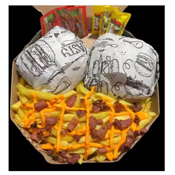 Combo para você e mais um! Combo com 2 X-Tudo + Fritas para 2 pessoas crocantes com cheddar Original e bacon frito em cubos + 1 Coca Cola 600.