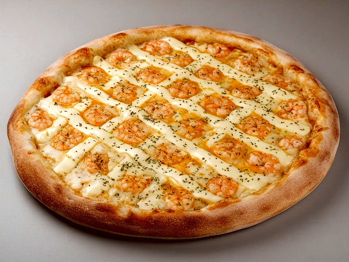 Frango desfiado, bacon, presunto, queijo, orégano, tomate, pimentão e cebola.