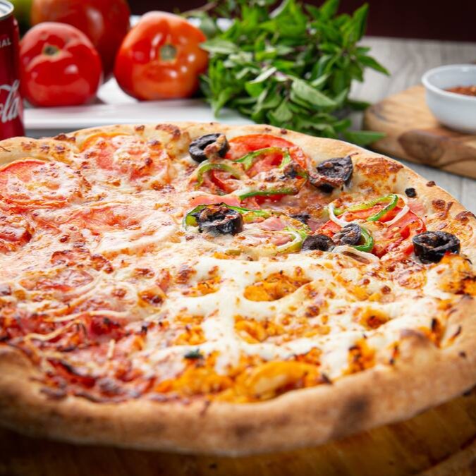 Muçarela, presunto e molho especial. 1kg, serve duas pessoas.